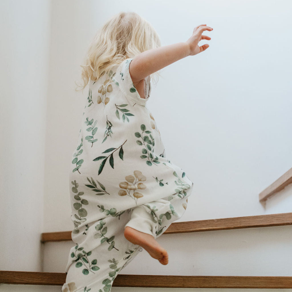 0.3 TOG bamboo summer toddler sleep suit | green leaves