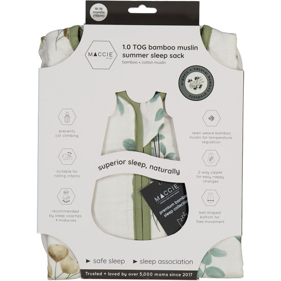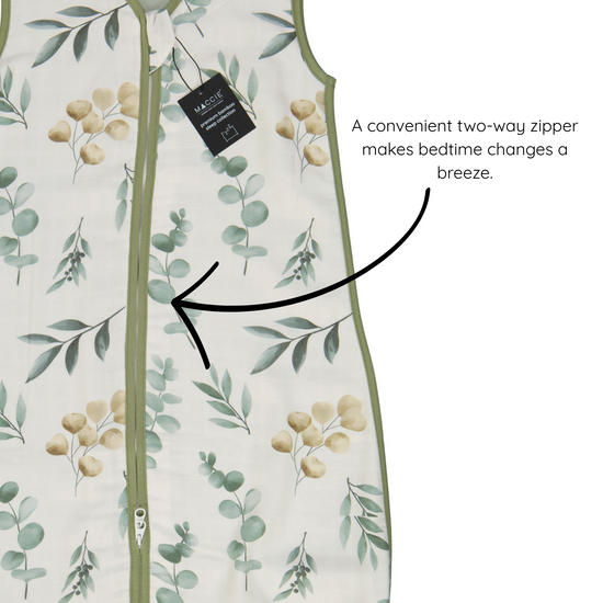 MACCIE muslin sleep sacks have been designed with ample movement room to help little ones sleep safe and sound. A convenient two-way zipper down the middle makes bedtime nappy changes even easier!