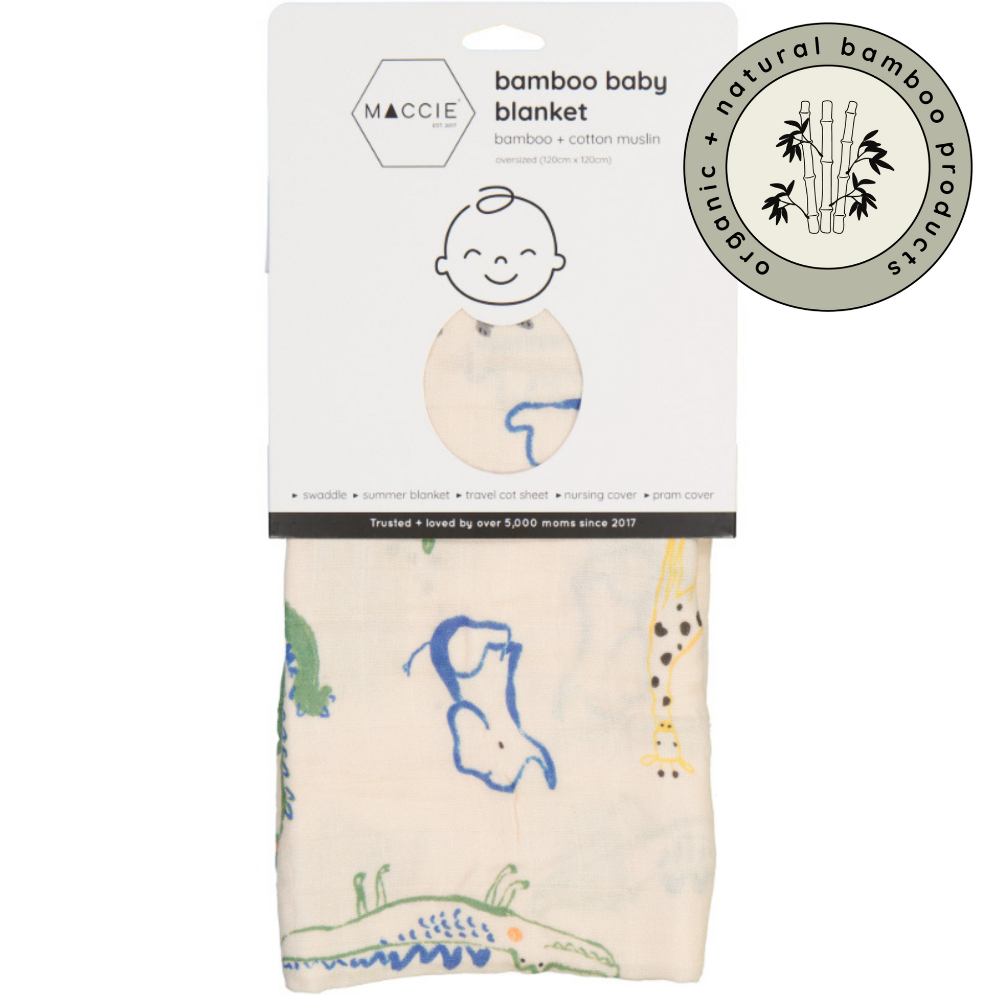 Our trendy prints make MACCIE bamboo swaddle blankets a must-have for every stylish mom and baby.