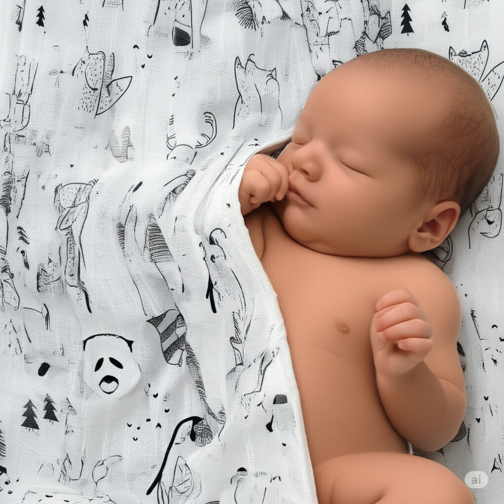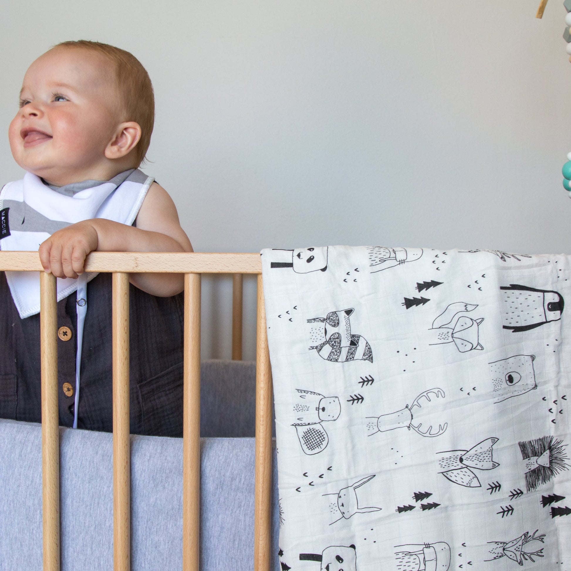 Made from 70% bamboo and 30% cotton muslin, MACCIE bamboo muslin swaddles are luxuriously soft, lightweight, breathable and generously sized.