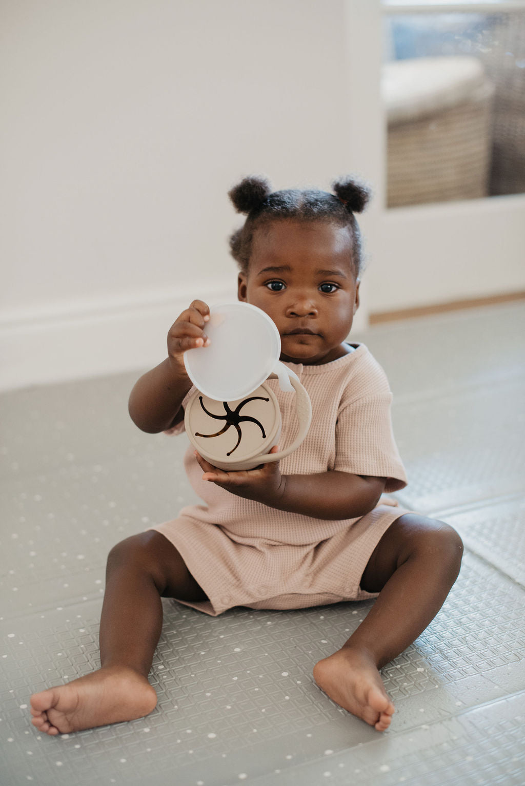 Say goodbye to snack time messes and hello to hassle-free snacking with our NEW MACCIE Stroll + Snack Cup, NOW with an attached lid. Yay for no more lost lids!